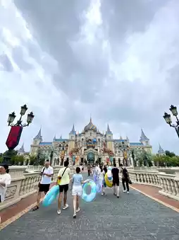 The scenic area features ancient Greek architectural styles, reportedly designed by the Disney team.