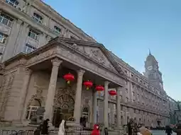 In winter, Harbin Pharmaceutical No.6 transforms into a magical fairytale scene. A giant snowman installation, complete with a colorful hat and scarf, along with a heart-shaped decoration on its chest, brings warmth and vibrancy to this industrial heritage site. Nearby, a playful Santa Claus figure appears to be "hanging" from the building's windows, creating delightful holiday cheer alongside the snowman. These charming installations captivate both children and adults alike, evoking nostalgic childhood joy.