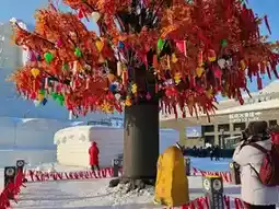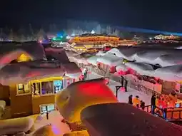 Our Harbin adventure began with a scenic drive to Yabuli Snow Town, about three hours from the city. The road was lined with snow-covered trees, giving off serious “winter wonderland” vibes. Once we arrived, the entire town felt like a postcard — traditional wooden houses blanketed in soft, powdery snow, chimneys smoking gently into the freezing air.