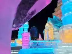 Back in Harbin, we dedicated our second day to the world-famous Harbin Ice and Snow World. We arrived just before sunset, as the massive ice sculptures began to light up in dazzling colors. It was absolutely surreal — an entire city of crystal-like structures made from blocks of the Songhua River, including full-sized castles, pagodas, bridges, and even ice slides.