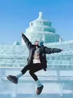 The ice sculptures here are absolutely breathtaking — especially from afar! Most of them are huge architectural pieces, and when you get close, you can actually see how each block of ice is stacked together — it really shows the hard work behind every detail. But when you step back and see the lights come on… that’s when the magic truly begins. It’s like stepping into a fairytale made of ice and colors. 🏰💙