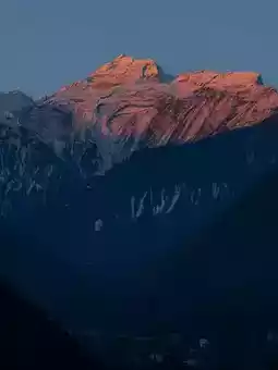 3⃣p5-8 Gongga Snow Mountain Hailuogou Moxi Town, p5 the town just waking up and the golden mountain, p6 the sunrise golden mountain on the roof of the homestay, p8 accidentally seen from the plane window.