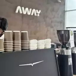 Away, a beautiful cafe in Hat Yai. The shop comes in a cute minimalist white-gray theme. 🤍 There are photo corners to take pictures. 📸 The corner in front of the shop is very beautiful. 🫣