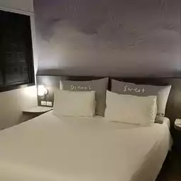 The hotel is simply decorated and looks modern. The lobby is compact, but not too cramped. Beds and pillows are used as decorations to match the hotel's name. There is a small meeting room on the second floor. The hotel does not serve food, but you can order from a nearby restaurant. There is a menu in every room. The hallway is decorated with colorful cartoon graphics, making it look more stylish. The rooms are also simply decorated. The rooms are spacious and have good internet speed.