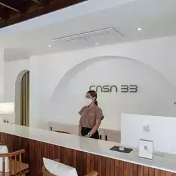 In front, there is a chic staircase to stand up and take pictures. There are seats both inside the shop