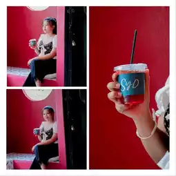 ......The shop is beautifully decorated in red and dark green tones that contrast perfectly. There are places to take pictures both inside and outside the shop. I must say it's very beautiful.