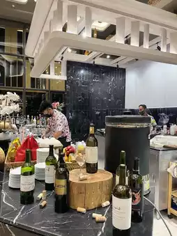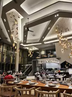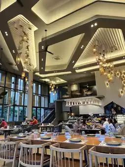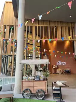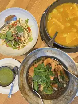Sawa, a restaurant in The Signature Hotel Airport, offers a wide variety of food to choose from. The focus is on local food, using fresh local ingredients from the sea, emphasizing the strong flavors of local cuisine. Some of the dishes may not be your first time eating, such as fried rice with crab fat, tom yum kung koh yai, papaya salad with tamarind sauce, fried eggs, seaweed salad, etc. If you’re still not satisfied, the restaurant also offers Western-style dishes, such as German pork knuckles, BBQ pork ribs, tomahawk steak, and Atlantic salad, as well as many desserts and drinks. The prices of the dishes are around 80-350 baht.