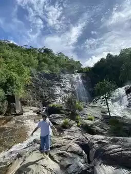 Hello everyone, today I will take everyone to visit Hat Yai District, Songkhla Province. Today, I will take everyone to visit Ton Nga Chang Waterfall National Park. Here, there are many people who come to picnic and eat at the waterfall because this place is full of nature, there are many monkeys and many other photo spots. Here, there are convenient parking, food and drinks. There are many levels of waterfalls here, but the highlight is the third level, which is a beautiful view of the waterfall that can be seen all over Songkhla. 🐘🏝️🌈⛰️⚡️