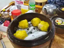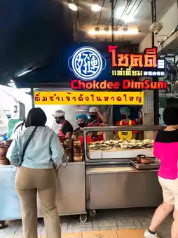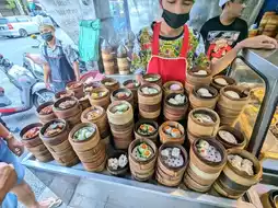 2. Dim Sum: There are many to choose from, such as steamed buns, dumplings, and many more. There are many to choose from in front of the cabinet. The price is 25 baht per steamer.