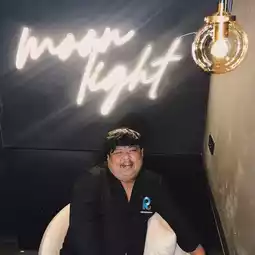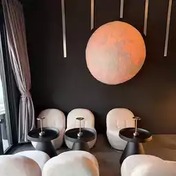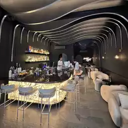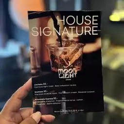 Decorated with a large moon that provides beautiful light, the bar has a photo corner that I can tell you that 100 out of 100 will definitely get beautiful photos. There are seats in front of the bar where you can sit and talk with the bartender, take beautiful photos and videos while he cooks, or you can sit in the table area or sofa area as well.