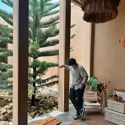 The atmosphere in the shop is both air and open air. The atmosphere is good, refreshing, shady🌲 Feels good, you can take pictures at every angle, definitely beautiful and chic.