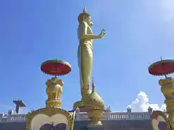 To get here, you can take a cable car or drive up. There is also a shuttle service from below to here. Before reaching Phra Phuttha Mongkhon Maharat, you will pass Phra Phrom first. You can stop to worship the large Guan Yin statue.