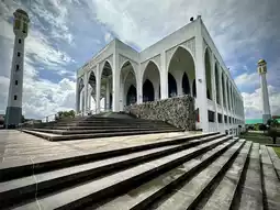 🌳 To be honest, it looks beautiful from a distance. When you get close, it is very difficult to take pictures because it is high, wide and big. The further you go inside, the more spacious and magnificent it becomes. It is built on beautiful Islamic architecture. It stands out with a pond in front that is more than 200 meters long. I recommend that it is most beautiful during sunset.