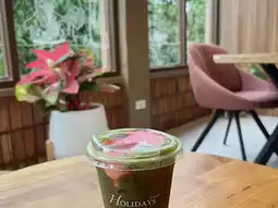 The shop has a great atmosphere, comfortable seating, big trees, shady nature, very suitable for days when you want to slow down or come to work, read books, gather family, chat with friends.