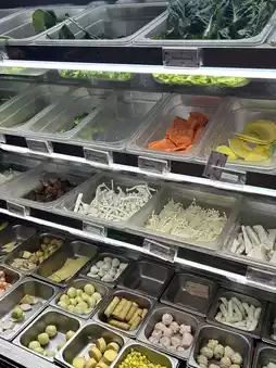 "Longhua Longhua" Chinese style mala tang restaurant. The price is weighed by the weight that we take. Take as much as you pay for. 45 baht per 100 grams. There are also 5 types of soup to choose from: mala soup, mala milk soup, milk soup, black soy sauce soup, vegetarian mushroom soup.