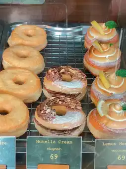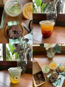 There is a beautiful photo corner upstairs. The front of the shop is beautiful. The atmosphere is great. Anyone who has a plan to visit Songkhla, I recommend it. ✨️Moon Donuts🥯🍩