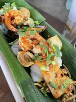 I went straight for their signature bamboo seafood platter, which is basically a feast served in a giant bamboo tube. It came loaded with prawns, mussels, squid, fish, and soaked in this spicy, tom yum-style broth. Super aromatic, and they even bring it out with dry ice so it arrives looking like something out of a food show. Total Instagram moment.