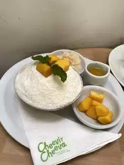 Cheevit Cheeva in Hatyai has a clean, minimalist interior — white walls, wooden accents, and plenty of natural light pouring in from large windows. The atmosphere is calm and relaxed, perfect for hanging out with friends or taking a solo dessert break. It’s the kind of place where you’d happily sit for hours with your bingsu and a cold drink, escaping the afternoon heat.#wheretoeatinhatyai #localflavors #travel