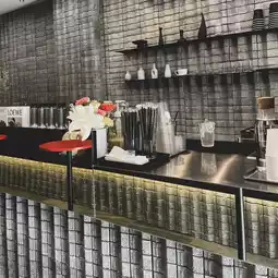 • A cool loft-style cafe using bricks in a raw, chic style