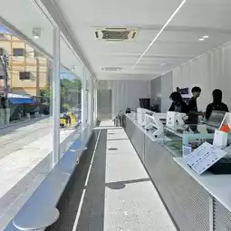 • Compact cafe, white + wood + stainless steel tone, simple but expensive