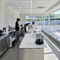 • Open counter, barista makes fresh coffee in front of you