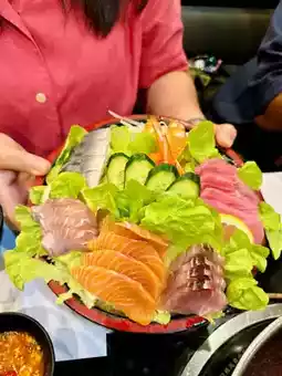 🍲It is a buffet shabu restaurant at a price of 599 baht, serving both wagyu, sashimi and shabu. It is a restaurant that I tried for the first time and liked very much. The food is fresh and clean, delicious and the service is fast. There are many menus to choose from. In addition to sashimi, there are also pickled salmon, pickled shrimp and various oysters for you to try. I personally like every menu that I ordered. It is very good value for money because it is a very large meal.