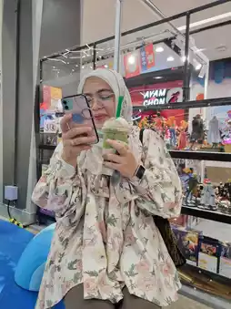 👉🏻👉🏻We recommend the blended green tea with red beans, with a strong flavor, a distinct green tea aroma, and a variety of toppings to choose from. The price is around 120 baht.