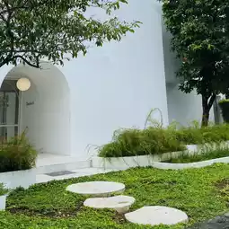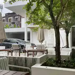 The white building is located in the heart of Hat Yai, near Hat Yai Hospital. The front of the building houses a minimalist cafe, offering drinks and bakery items for tourists and visitors, as well as a photo corner for the ladies who love taking photos.