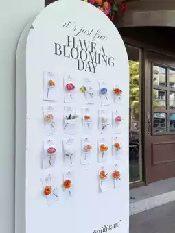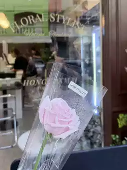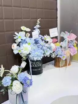 This cozy cafe is sure to captivate the ladies, drawing them in from the entrance all the way to the inside. The small but cozy shop offers a limited number of tables, so be sure to choose your time of day. They offer both coffee and non-coffee drinks, as well as desserts. What makes this cafe special is their flower arrangement service. You can choose your menu at the counter. Content creators shouldn't miss this. They also offer set flowers with drinks for stunning photos. If you don't want a bouquet, you can choose individual flowers from the display case, which the staff will wrap in clear plastic and tie with ribbon. Prices vary depending on the day's flowers. There are also artificial flowers and free healing message cards right in front of the shop, so it's incredibly cute!