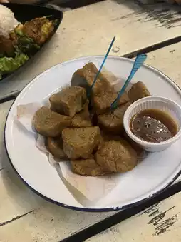 #GetDiscountsWithoutLuck amanda cafe&te', Khlong Rian 2 branch, is a Halal restaurant and tea shop with a nice, shady atmosphere. Food and drink prices are not too expensive, and there's plenty of parking. They offer a wide selection of food, including fried foods, spicy salads, burgers, snacks, roti, and Kuepo (crispy on the outside, soft on the inside). They also serve made-to-order rice dishes and a wide selection of drinks. It's a Muslim-friendly restaurant, one of the few in Hat Yai. It's a small, open-air restaurant. I really like the atmosphere; it's not too busy, making it a great place to chill and chat at night.