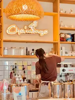 CHAMINGO is a unique and photogenic cafe! It feels like a little-known place. Every corner is colorful and perfect for photos. It's not crowded and quiet, making it a perfect spot for taking photos. Some of the drinks are quite delicious. I personally loved the Hojicha Latte. The strawberry milk was a bit bland, haha. The waffles were crispy. The prices are reasonable, but the cakes are a bit small. If you're interested, give it a try.