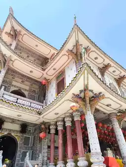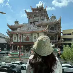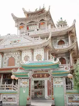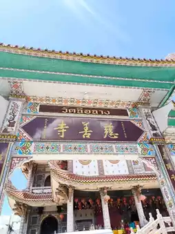 Atmosphere: Located in the heart of Hat Yai, in a residential area near Kim Yong Market, this beautiful Chinese temple blends Thai, Chinese, and Tibetan architecture. The large building features a creamy white tone, contrasting with the colorful roof tiles and various decorative patterns. Inside, there are many deities. The walls and pillars are decorated with ceramic tiles in various patterns. Chinese-style lanterns hang everywhere. Besides tourists coming to pray, make merit, and take photos, you can also see locals and locals participating in activities.