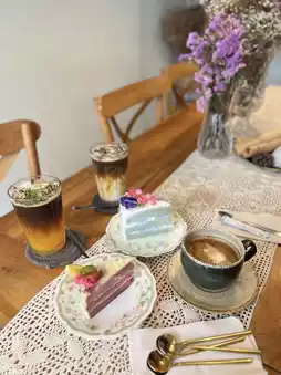 Lagos House - Artisan Bakery & Eatery is a small cafe with cute decorations and plenty of photo spots. Come sit and relax while enjoying a snack. The desserts here are delicious and come in a variety of choices. I personally like the carrot cake, which is delicious and beautifully decorated. Or if you're very hungry, you can order savory dishes. They have a menu of savory dishes to choose from as well, including rice and spaghetti. There are also a fair number of drinks to choose from. I personally like the shop's Thai tea recipe, which is not too sweet and just right. The shop has two floors and is not very spacious. If you come at noon or after work or school, there might not be any seats.