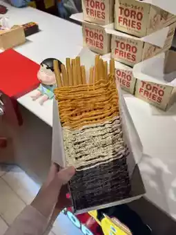 When you're walking into a mall and looking for something crispy and hot to refresh your shopping break, Toro Fries is a must-try. Try a box.
