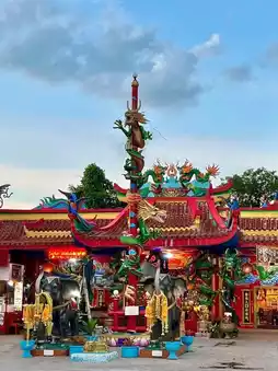 The Nezha Temple, also known as Nagasila Dham Temple, is one of Hat Yai’s most striking and spiritual landmarks. Dedicated to Nezha (Na Cha) — the Chinese deity of protection — this temple is a dazzling blend of Thai and Chinese architecture. 🌸