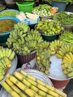 🍌 Fresh Fruits & Local Snacks – Taste juicy tropical fruits, dried mangoes, and Thai sweets.