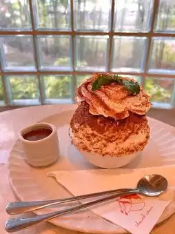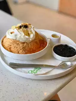 The shop's signature menu items are fusion desserts, especially their "Shaved Ice Bingsu," which come in a variety of flavors and toppings, such as the Ovaltine Volcano Bingsu, Thai Tea Bingsu, and Mango Bingsu. They also offer a special durian bingsu menu and special desserts like cheesecake, honey toast, and brownies. These are incredibly delicious.