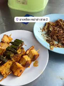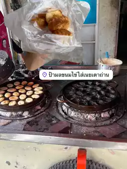 Stop by for some Auntie Mon's egg buns, fragrant and soft on the inside, and then try the sweet and savory Kaloji on Nang Ngam Road. 🍩