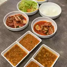 The food here is fresh and delicious, especially the portions, which are not too thin or greasy. They offer a wide selection of pork, beef, and seafood. Side dishes like kimchi, pickled vegetables, and soups make this meal truly delicious. You can also get your own unlimited pickled vegetables from the cabinet.