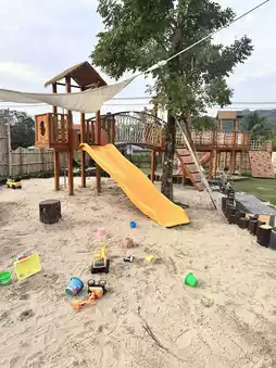 Hakuna Matata, Hat Yai, Songkhla Province, is open Tuesday-Sunday, closed every Monday. Open from 3:00 PM to 9:00 PM, this Hat Yai playground is a great place for kids to unleash their energy. Suitable for ages 3-7, it features a sandpit, swings, slides, and a career zone. If you have kids and don't know where to take them, this is a great place for moms to take a break and let the kids unwind. Parents can wait at the entrance, and there's a food and snack selection available. #hakunamatata #hatyai