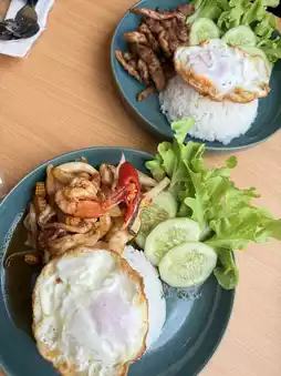 ✔ Seafood Stir-Fry with Chili Paste + Fried Egg