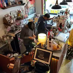 From the moment you step inside, you'll be greeted by a warm and welcoming atmosphere, like you've dropped by a friend's house, filled with books, vintage furniture, and decorative items with stories.