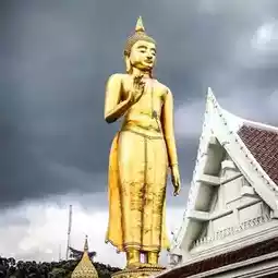 Phra Phuttha Mongkhon Maharat stands tall on Khao Kho Hong. It is the Buddha image of Hat Yai City and is highly revered by the people of Hat Yai and nearby. The atmosphere in the evening is cool, the sky is clear, the air is fresh, and there are many people exercising and enjoying the view at Hat Yai Municipal Park, Songkhla Province. Come visit us. #Khao Kho Hong #Kho Hong #Hat Yai #Visit Hat Yai #Songkhla Province