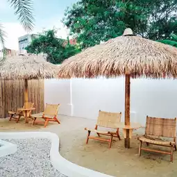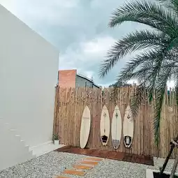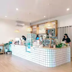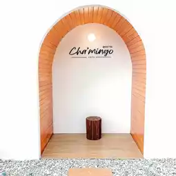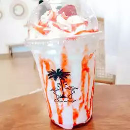 A cafe decorated in a slightly beachy and Bali style because they have brought sand to make it look like a beach for girls to take pictures. The Taiwanese bubble milk tea menu here is very good, the price is not expensive, starting at 40 baht. There are many types of pearls and a variety of drinks to choose from, such as green tea, hojicha, and there are also bakery menus to eat. 🍰 🌴🏝🛖