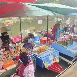 The first floating market in the South, located in the Khlong Hae Temple area. 🚣🏻