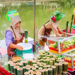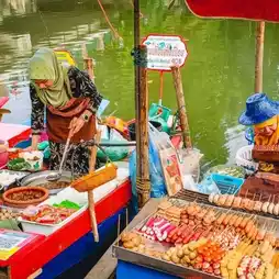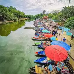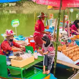 Khlong Hae Floating Market, the first floating market in the South, is located in Khlong Hae Municipality, Hat Yai District, Songkhla Province. It is considered the first cultural floating market in the South that combines a floating market and an ancient market. The products sold here are local products. There are many types of local desserts and southern food. It is an ancient Thai-style floating market that perfectly blends with a variety of southern food. The clothing of the vendors is unique. They dress in ancient Thai costumes and dress according to the way of life of the local people, which is very beautiful. There are also local desserts and foods, such as Tao Kua, Southern Thai salad, Khanom Jeen. If it's a sweet dessert, there will be Khanom Mot, Khanom Duang, Khanom Kho, and all kinds of Thai desserts. Including local southern desserts and hard-to-find local southern foods, you can still find them here. The food is clean and very delicious. On Fridays, Saturdays and Sundays, Thais and Malaysians travel here in large numbers. The atmosphere is lively and filled with happiness. The market also has a place for those who are talented in music. You can also go up and sing on stage 🥰 This holiday trip, let's go to the floating market together, everyone.
