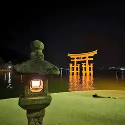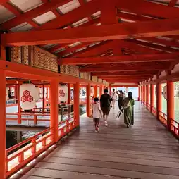 Japan's proud World Heritage site, Itsukushima Shrine, is located on Miyajima in Hiroshima Prefecture. Itsukushima Shrine was registered as a UNESCO World Heritage site (cultural heritage) in 1996 and already has a history of over 1,400 years. Its most distinctive feature is the large vermilion torii gate standing in the sea. The shrine grounds are located on a shallow beach, and at low tide you can walk to the large torii gate. There is a shopping street in the surrounding area, where you can enjoy the famous autumn leaves grilling.