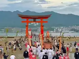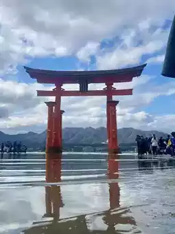 The tides also rise and fall depending on the time, and when the sea 🌊 goes out, you can go close to the large torii gate.