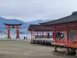 🎏The famous places that make us want to cross over to this island are Itsukushima Shrine, a Shinto shrine over 1,000 years old, and O-Torii Gate, a large red torii gate over 100 years old.