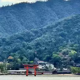 Itsukushima Shrine, which is famous for its distinctive floating torii gate. It is a UNESCO World Heritage Site, and is one of the most iconic images of traditional Japan. This a torii gate like no other in Japan, and is a great photo taking spot.